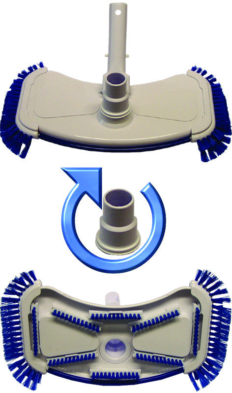 Bodenabsaugerbürste "Butterfly brush" Nierenform mit zusätzlichen seitlichen Bürsten. Der klassische Bodensauger für alle Schwimmbeckenformen und -oberflächen. Schlauchanschluss 32/38 mm, Breite ca. 35 cm, Gewicht ca. 1 kg. In zwei Varianten lieferbar "brush standard" und "brush deluxe" mit drehbarem Schlauchanschluss "Swivel"
