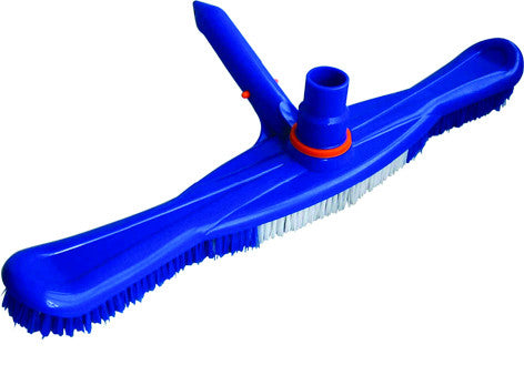 Breite Wandbürste mit hochgezogenen Enden und mittigem, drehbarem Schlauchanschluss 32/38 mm. Besonders empfehlenswert zur Wandreinigung von Schwimmbädern und Schwimmteichen. Der große Vorteil besteht darin, dass mit der Bürste gelöste Rückstände direkt abgesaugt werden können. Ergänzend kann auch ein Laubfilter (Leaf Trap/Leaf Canister) verwendet werden, um ein Zusetzen des Filtermediums mit Rückständen zu mindern, ca. 52 cm breit. Mit Pressclip zur komfortablen Befestigung an der Teleskopstange.