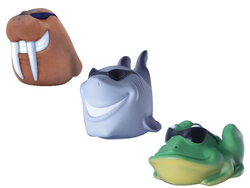 Thermometer - Cool Animal, 3 freche Styles: Walross, Haifisch und Frosch (Preis pro St.)Große Anzeige in Celsius und Leine zum Befestigen.Maße: Ø Rohr 29mm - Höhe 215mm