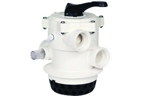 6-Wege 1 1/2" Rückspülventil Top Mount (Praher) aus ABS mit 6"- Gewinde BS zum Aufschrauben auf den Filterkessel, mit Schauglas und Manometeranschluss.
