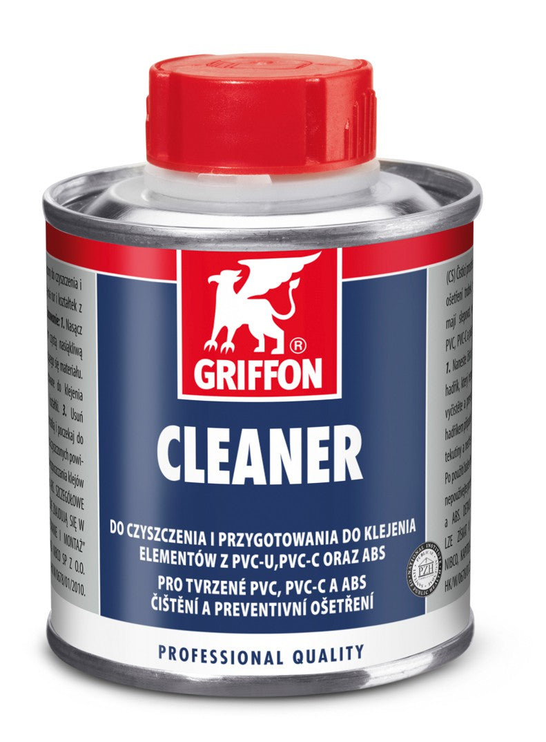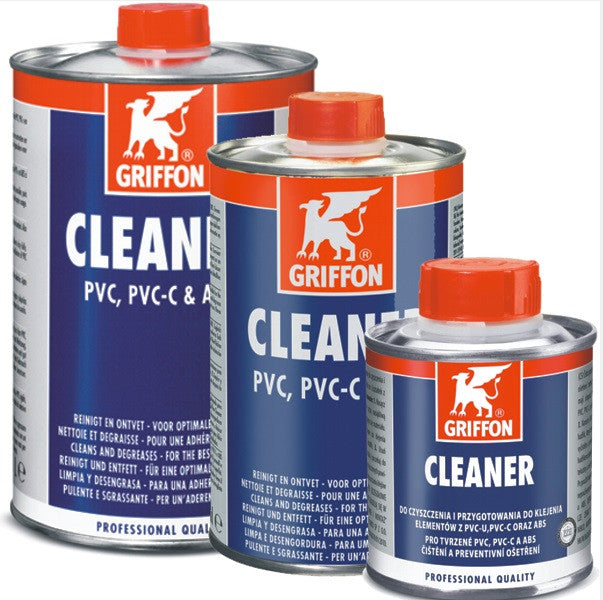 Griffon-Reiniger: zum Reinigen und Entfetten von zu klebenden Fittingen, Armaturen und Rohren aus PVC und ABS. Auch zum Reinigen von Werkzeugen und Pinsel verwendbar.