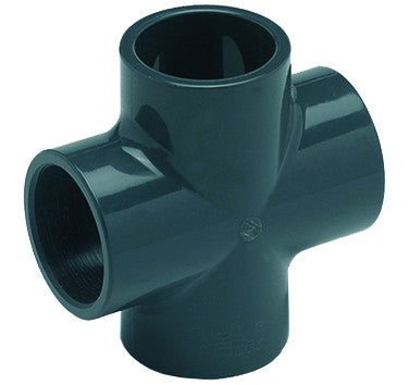 PVC-Kreuzstück 90° grau, mit 4 x Klebemuffen in d50 oder d63 mm.