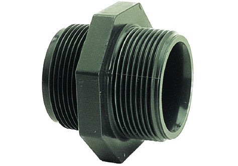 PVC-Doppelnippel grau, mit Rohraußengewinde x Rohraußengewinde.