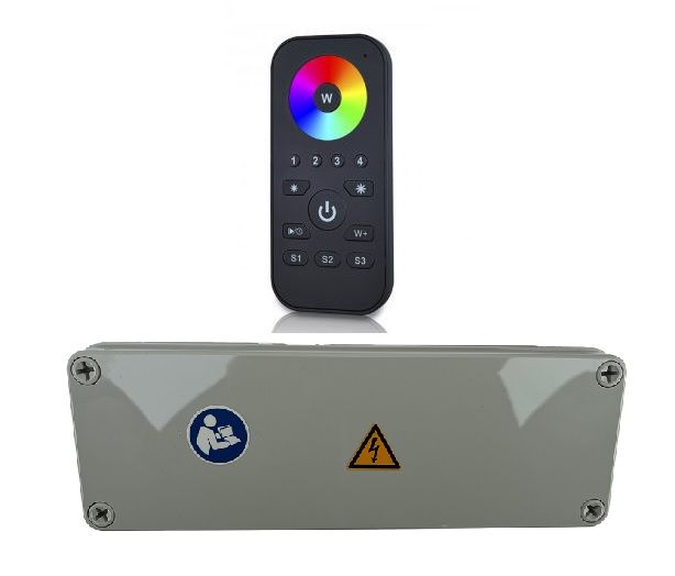 ►Funkempfänger (DMX) und Funkfernbedienung (4 Zonen) für EVA RGBW und RGBWW Scheinwerfer ►Funkempfänger (0-10V Dimmer) und Funkfernbedienung (4 Zonen) für EVA MONO Scheinwerfer