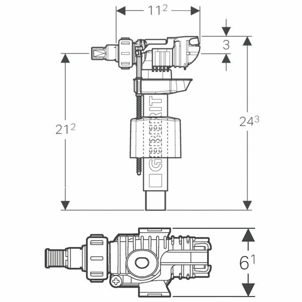 Mechanischer Niveauregler von Geberit für V4A Skimmer Slim 5000, Slim 6500, Hig Level 5000 und High Level 6500.Technische Daten: 0,1 - 10bar, Betriebstemperatur max 25C°, Durchflussmenge bei 0,5bar - 0,07l/s / Durchflussmenge bei 3bar - 0,19 l/s, Füllhöhe durch drehen der Spindel einstellbar, Leitungsgeräusch bei 3bar - 12dB.