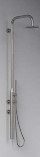 In Boden- oder Wandmontage lieferbar. Schlank und elegant zeigt sich die Dusche JUIST. Das Gehäuse ist aus hochwertigem Edelstahl gefertigt, die gebürstete Oberfläche verleiht der Dusche einen edlen Charakter. Mit dem Einhebelmischer aus gebürstetem Messing können Sie bequem die Wassertemperatur regeln, der große Duschkopf von 200 mm verleiht Regenschauer Gefühl. Mit der Handbrause lässt sich auch eine kleine Erfrischung schnell realisieren. Gewicht ca. 20 kg, Ausführung Bodenmontage: Flanschplatte Durchmesser 180 mm, Höhe bis Duschkopf 2300 mm. Ausführung Wandmontage mit drei Befestigungspunkten.