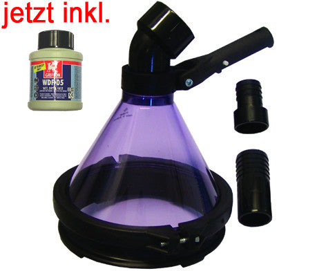 Mulmglocke - passend für alle Teichschlammsauger. Zur Reinigung der Flachwasserzone, sowie zur Sedimentabsaugung von Steinen und losem Untergrund. Technische Daten: Sauganschluss D50mm, zum Anbau an die Teleskopstange, Durchmesser 25cm.