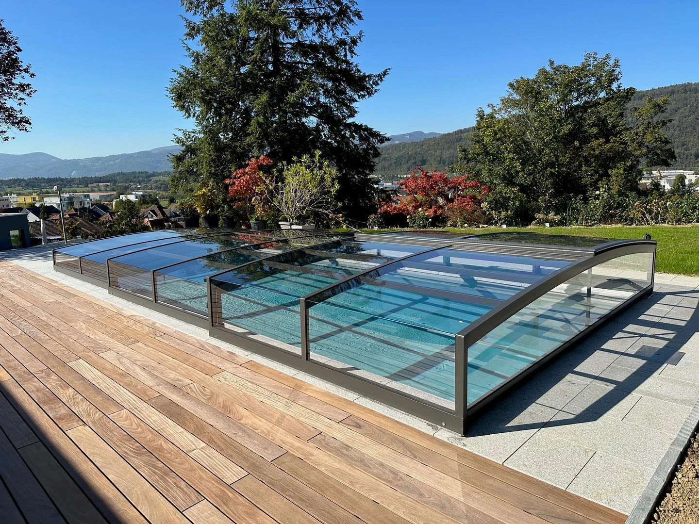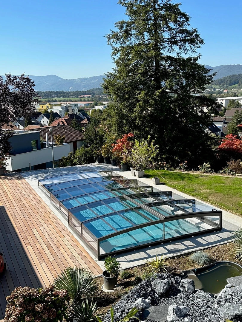 Die Überdachung schützt den Pool vor Schmutz und Witterung, unterstützt eine längere Badesaison und hilft, den Pflegeaufwand zu reduzieren.