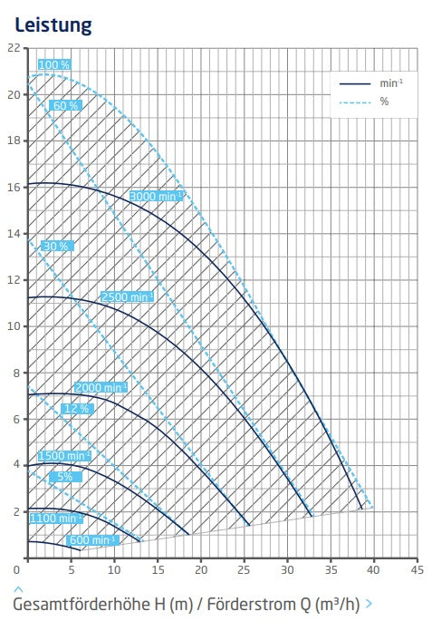 Technische Daten: Motorleistung in kW (P2): 1,10, Fördermenge in m³/h: max. 38,5